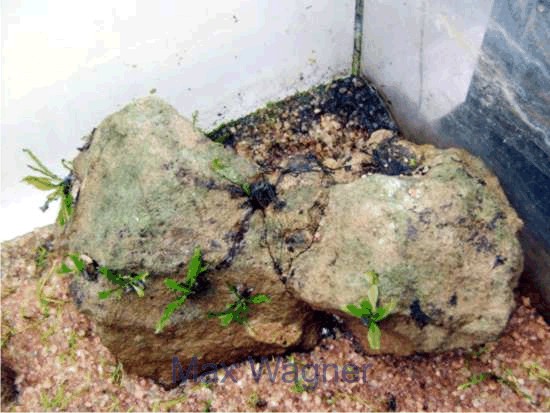 para fixar as mudas na rocha de arenito, sem reentrâncias suficientes , produzimos pequenos fragmentos da rocha e em cada um dos fragmentos (secos) amarramos uma muda de microsorium usando linha e a seguir com o aquario ainda com apenas um filme de agua no fundo, fomos colocando gotas de cola de silicone e nelas fomos fixando as mudinhas....esperamos a cola dar uma secada por aproximadamente 1 hora, e só então completamos o volume de agua do aquario, para evitar o ressecamento das mudas