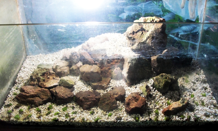 nesta foto o quaurio ainda está com apenas um filme de agua no fundo...o que deve ser feito para facilitar o plantio de plantas baixas, e só depois deve ser enchido