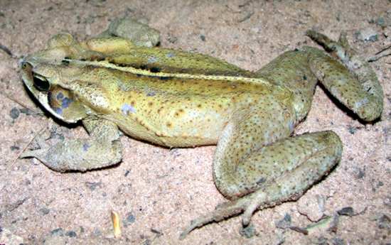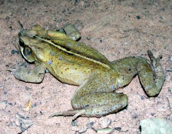 Parece ser um sapo cururu, mas o detalhe da cor parece ser diferente da coloração normal deles, e esse me chamou a atenção pelo colorido amarelado