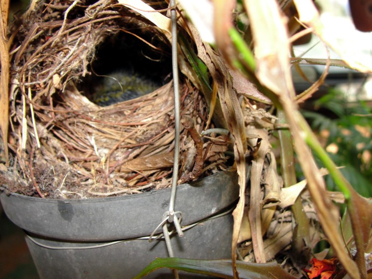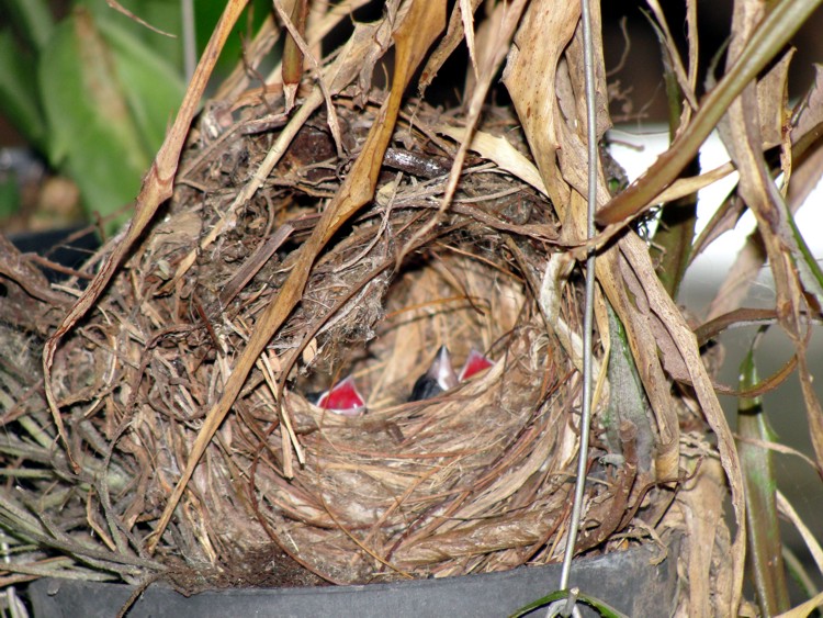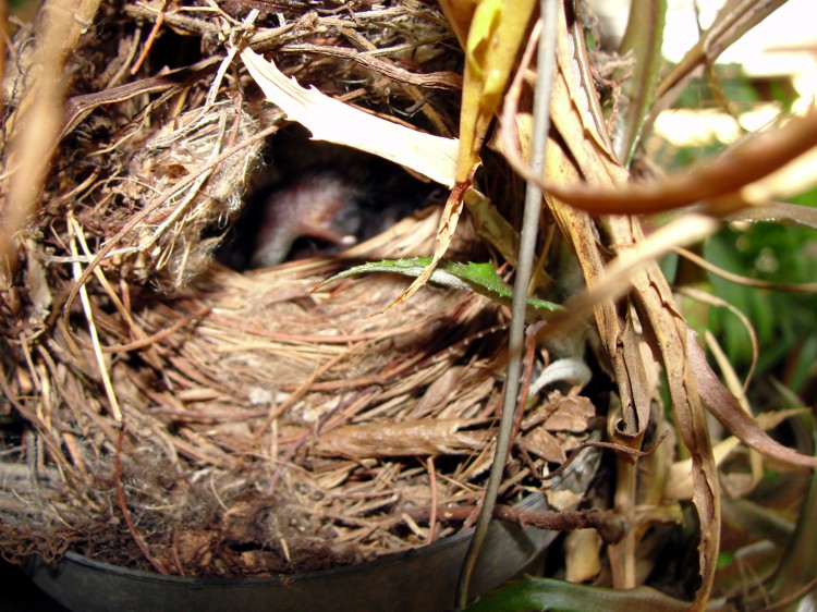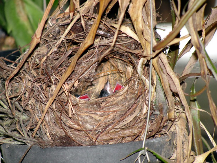 Esses que fotografamos construiram seu ninho em um dos vasos da varanda da frente da casa, e em 21-11-2011, nasceram os filhotinhos, mas o interessante é que haviam 3 ovos e vimos apenas 3 filhotes nascidos que em 11-12-2011 deixaram o ninho apenas 2 filhotes...Em 29-12 já haviam mais 3 ovos no ninho, que nasceram, um deles em 12-01-2012e o outro em 13-01-2011, mas curiosamente de novo sumiu um dos ovos que não sabemos se foi descartado, pois não o achamos nas proximidades.