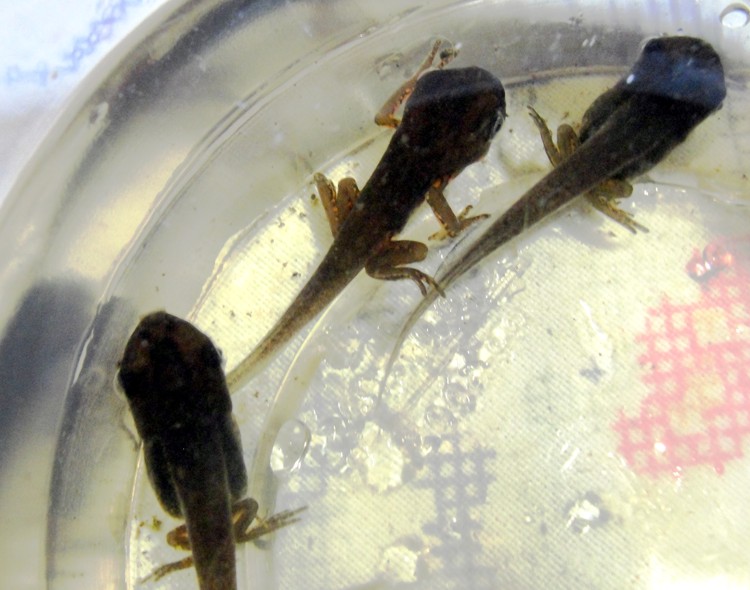 Fotos dos girinos mudando da fase de girino para a de imago