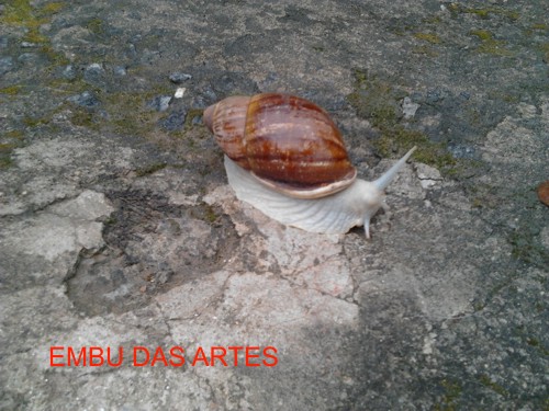 o caracol acima encontrado em Embu das Artes SP.por Claudio Chaskel, mede 100 x50 mm de concha, e o corpo se alonga 60mm para frente e para trás, e com o pé branco, e também deve ser de especie nativa, e bastante rara porque foi o unico exemplar encontrado em mais de 2 anos, desde que recebi a notificação do encontro.