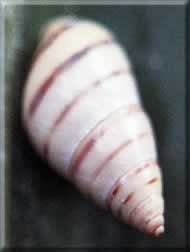 Características: Pequeno caramujo branco com riscas helicoidais