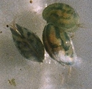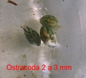 Reino: Animalia Características: São artropodes crustáceos muito pequenos, e com tamanho entre 0,4mm a 20mm. Tem carapaças bivalvas quitinosas, e unidas por uma charneira, na região dorsal. São essencialmente aquáticos( de águas doces, salobras ou marinhas) e existem mais de 50.000 espécies deles. E é muito interessante como surgem em pequenas coleções de água ou mesmo nas montagens de nossos aquários se não colocarmos algum predador deles. Eles aparecem logo nos primeiros dias e visualmente se parecem com minúsculos besourinhos nadando, geralmente de forma ondulada longa e elegante. Apesar das duas conchas ou carapaças eles não são classificados como moluscos bivalves, e sim como artrópodes. Estes da fotos tem entre 2 a 3 mm, é apenas como curiosidade, ao microscópio, é interessante como mexem os "bigodinhos"(apêndices) e passam extremidades semelhantes a "linguinhas" tentando assimilar o que pode servir de alimento existente na água. A carapaça é trocada a cada fase de crescimento.E estes microcrustáceos são reconhecidamente sensíveis a variações nas características físico-químicas do meio aquoso, o que os torna excelentes indicadores paleoambientais. Neste link um video (copie e cole o endereço) http://www.gre.ac.uk/schools/nri/earth/ostracod/mpegs/Ostracods.mpg