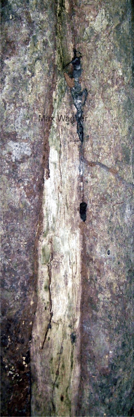 Detalhes da cicatriz do tronco e o calafetamento realizado, pelas abelhas ou por cupins?